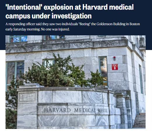 美国哈佛医学院发生爆炸。警方初步认定这是一