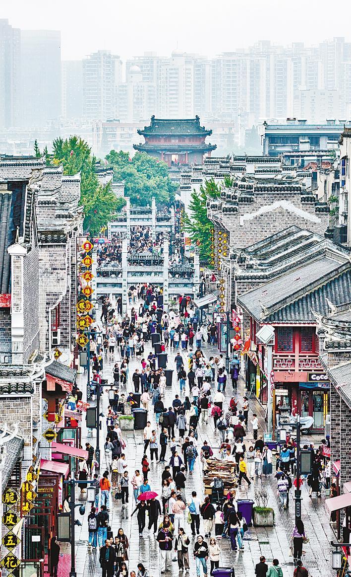 10月6日,历史悠久的向阳北街挤满了人。 (湖北日报全媒体记者刘树松、通讯员王虎提供)